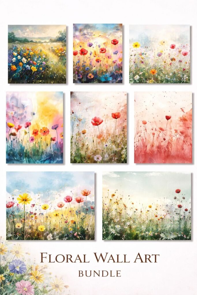 Brighten up your space with this Set of 7 Colorful Wildflower Prints.